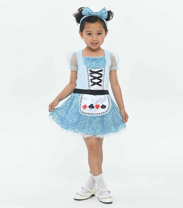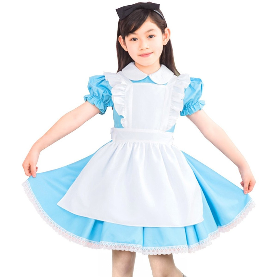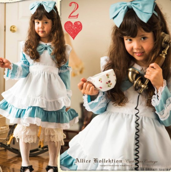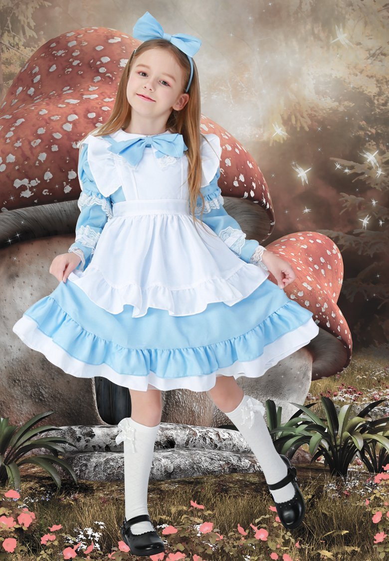 アリスの定番の衣装としては水色のドレス、大きなリボン、フリルのエプロン。